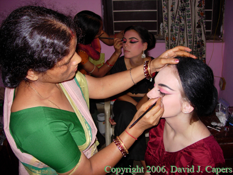 Sanjukta, Orissa Dance Academy, getting Mary Drew ready for stage.