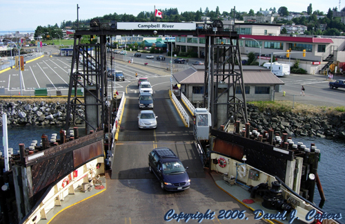 Ferry Boarding at Campbell River Terminal leaving Vancouver Island for a much smaller island. This time it was not a Super Ferry. Summer, 2005. |